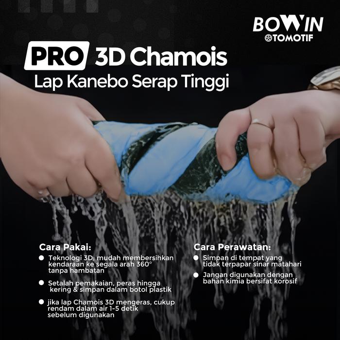 Bowin Lap Chamois - 3D Smart Technology (Lap Daya Serap Tinggi) Kain Lap mobil lap motor cleaning plastik - PRO KANEBO 3