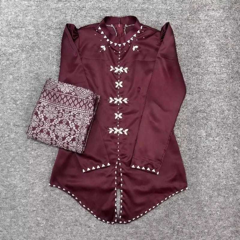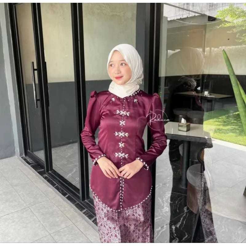 [ Terbaru ] Alana One Set Baju Kurung Melayu Rok Songket Modern | Atasan Baju Kurung Wanita Kekinian | Baju Kondangan Setelan Wanita | Kebaya Pesta Mix Full Payet Bahan Satin Lembut Premium