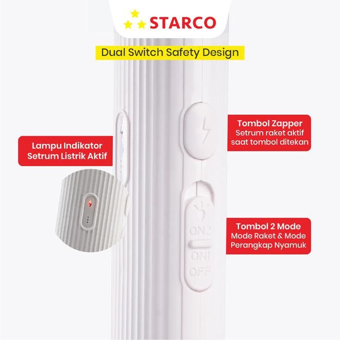 Starco Raket Nyamuk LED Light Rechargeable RN177