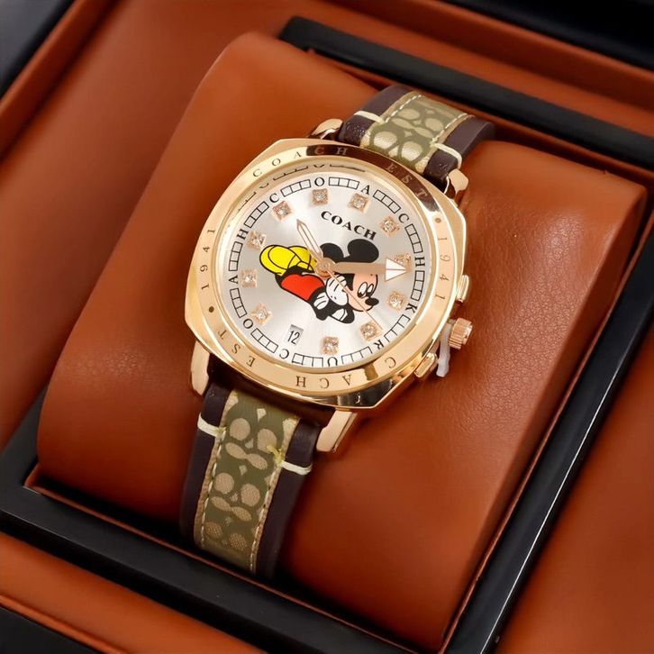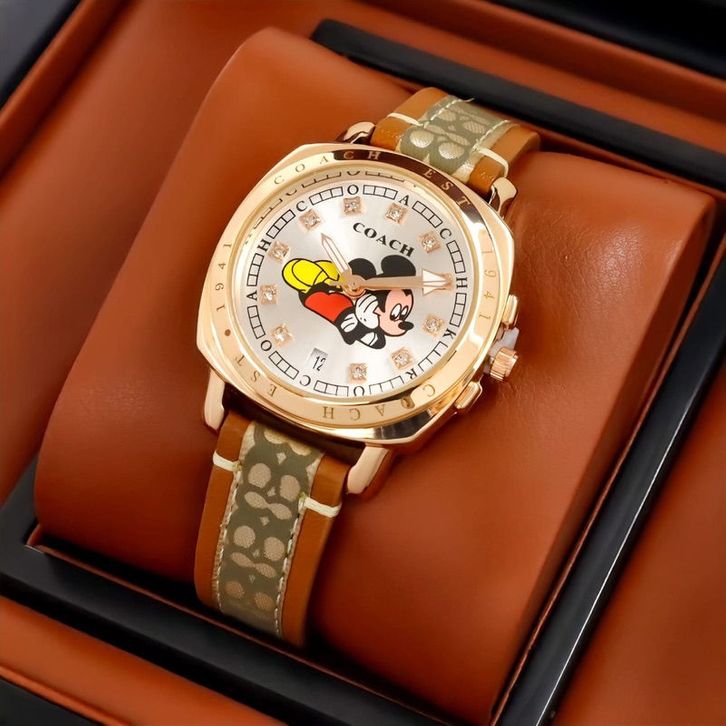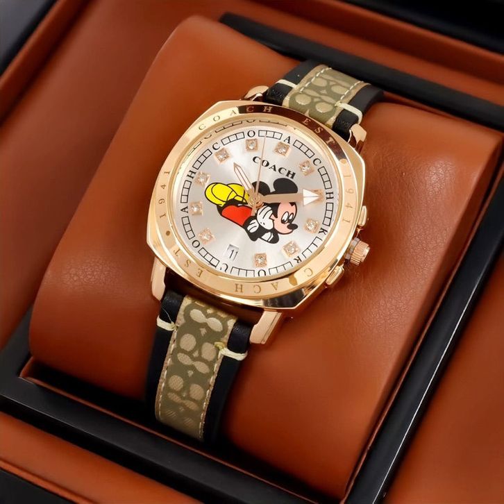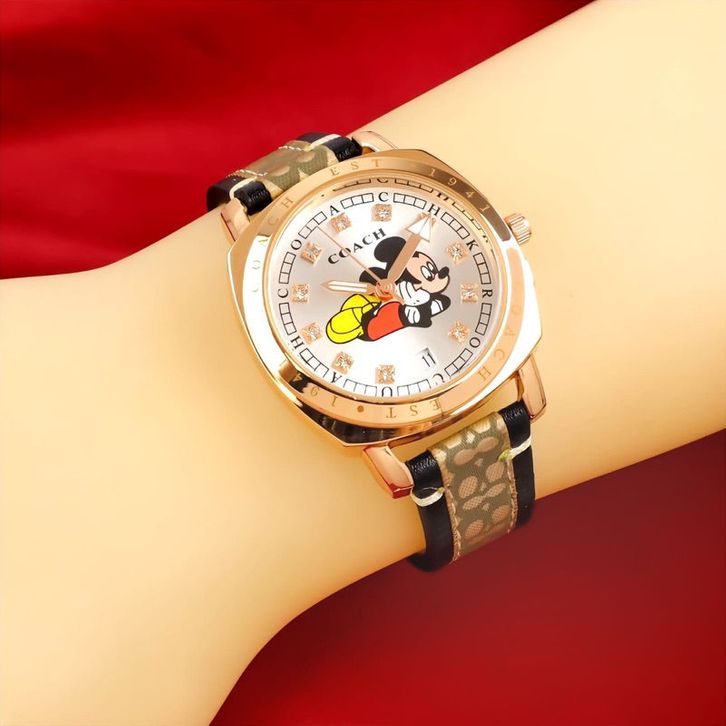 NEW JAM TANGAN WANITA CEWEK COC MICKEY KULIT 34MM STRAP KULIT PREMIUM JAM TANGAN MEWAH WANITA TERBARU