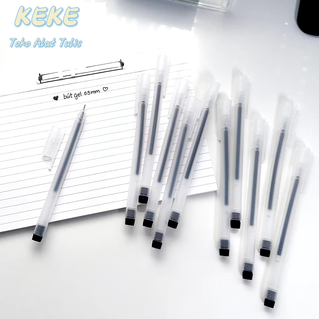 50-100PCS Pulpen Gel Hitam 0.5mm KEKE Cangkang Buram Transparan Standard Pena Ujung Lancip Pena Gel Runcing 3 Warna