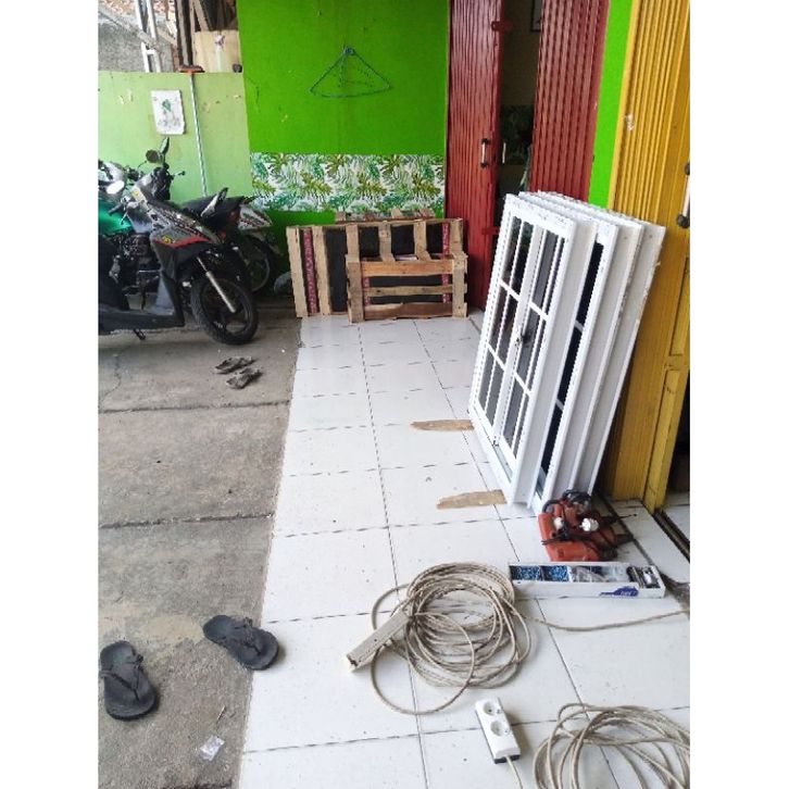 Jendela sliding aluminium kaca ornamen 100x100 free paking kayu