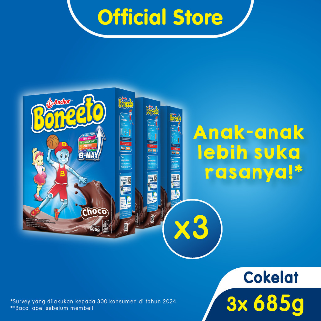 Boneeto Susu Bubuk Anak Sekolah Yummy Choco 3 x 685g - Nutrisi Pertumbuhan Anak untuk Daya Pikir dan Tubuh Aktif