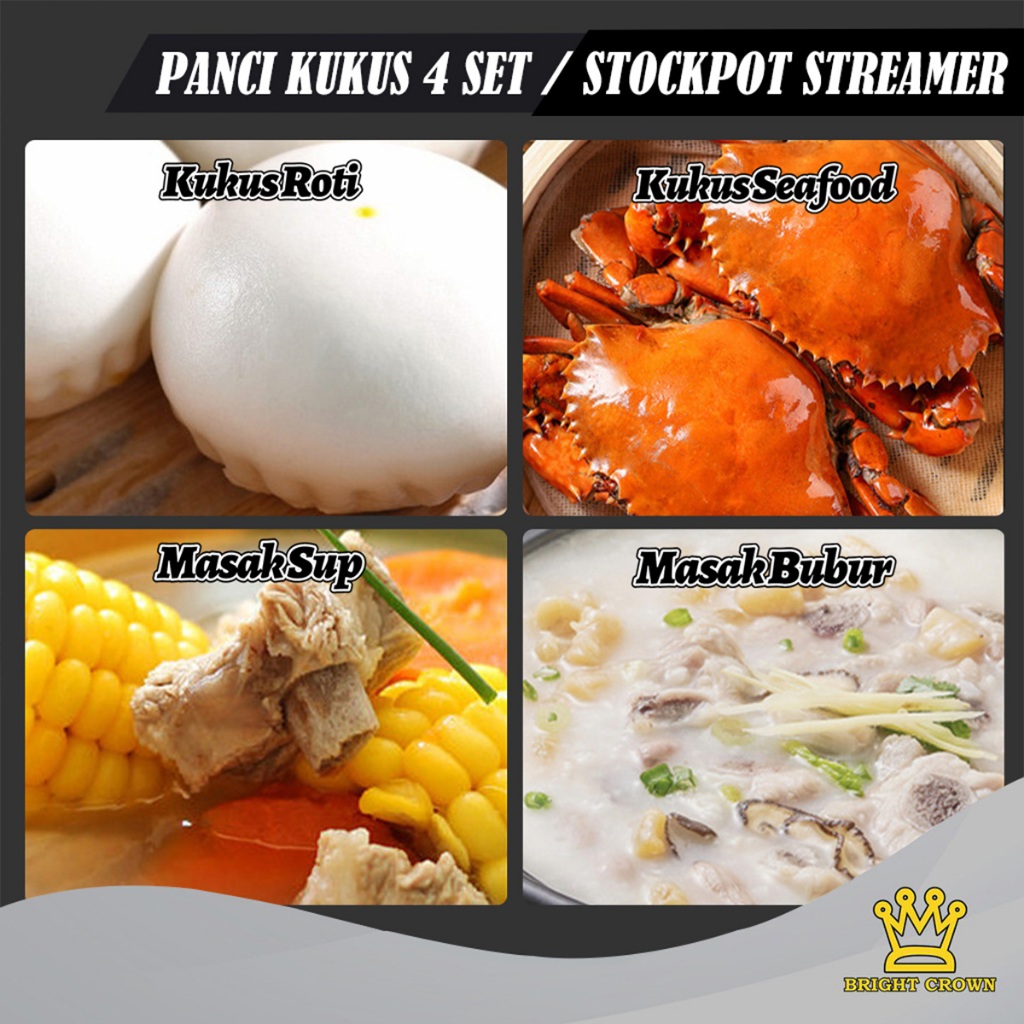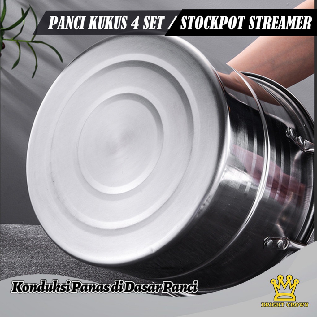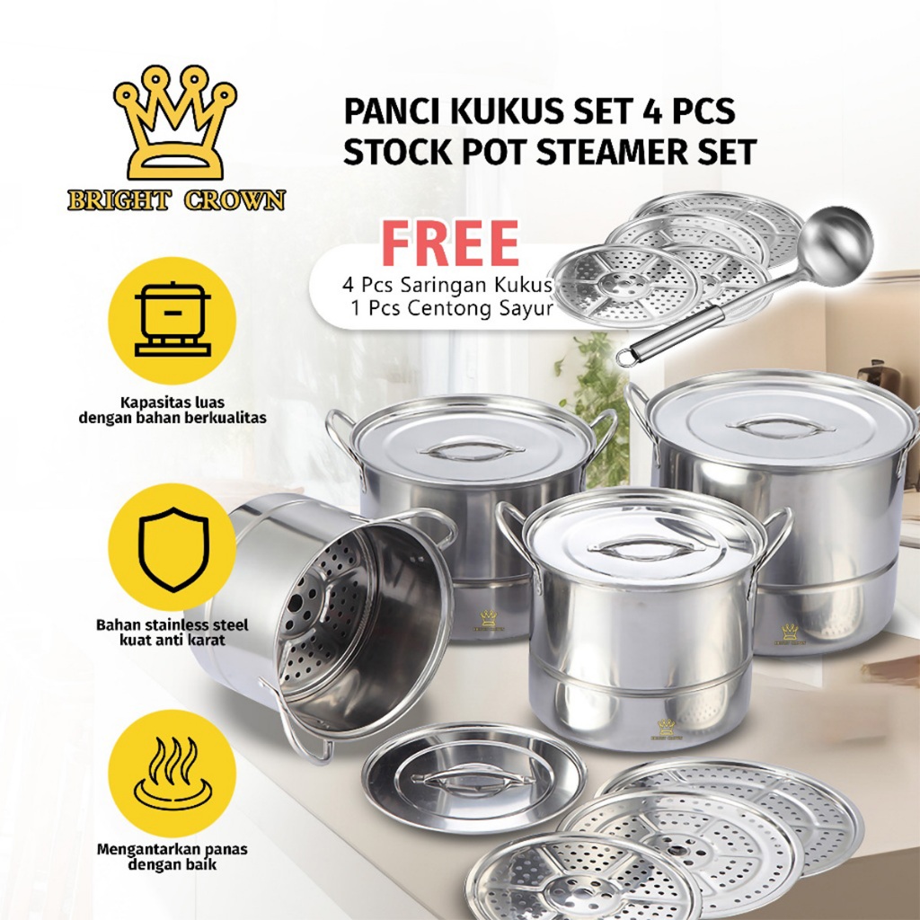 GERATIS ONGKIR KK by Bright Crown Stockpot Streamer Panci Stainless 4 set+Centong Sayur FREE STEAMER /Dandang Nasi