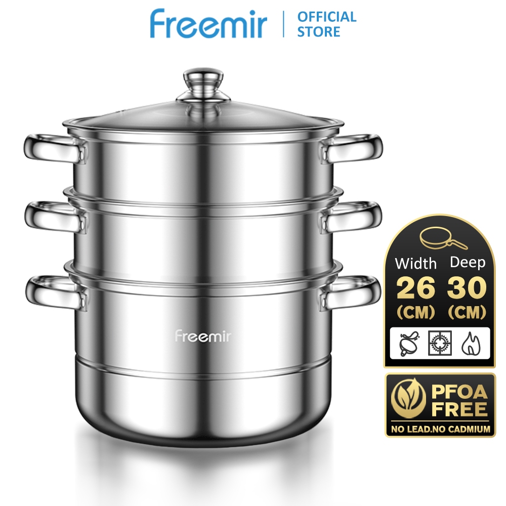 GERATIS ONGKIR [OFFICIAL MALL] freemir Panci Kukus 2/3 Tingkat Panci Rebus Steamer Stainless Steel Multifungsi Anti Kara