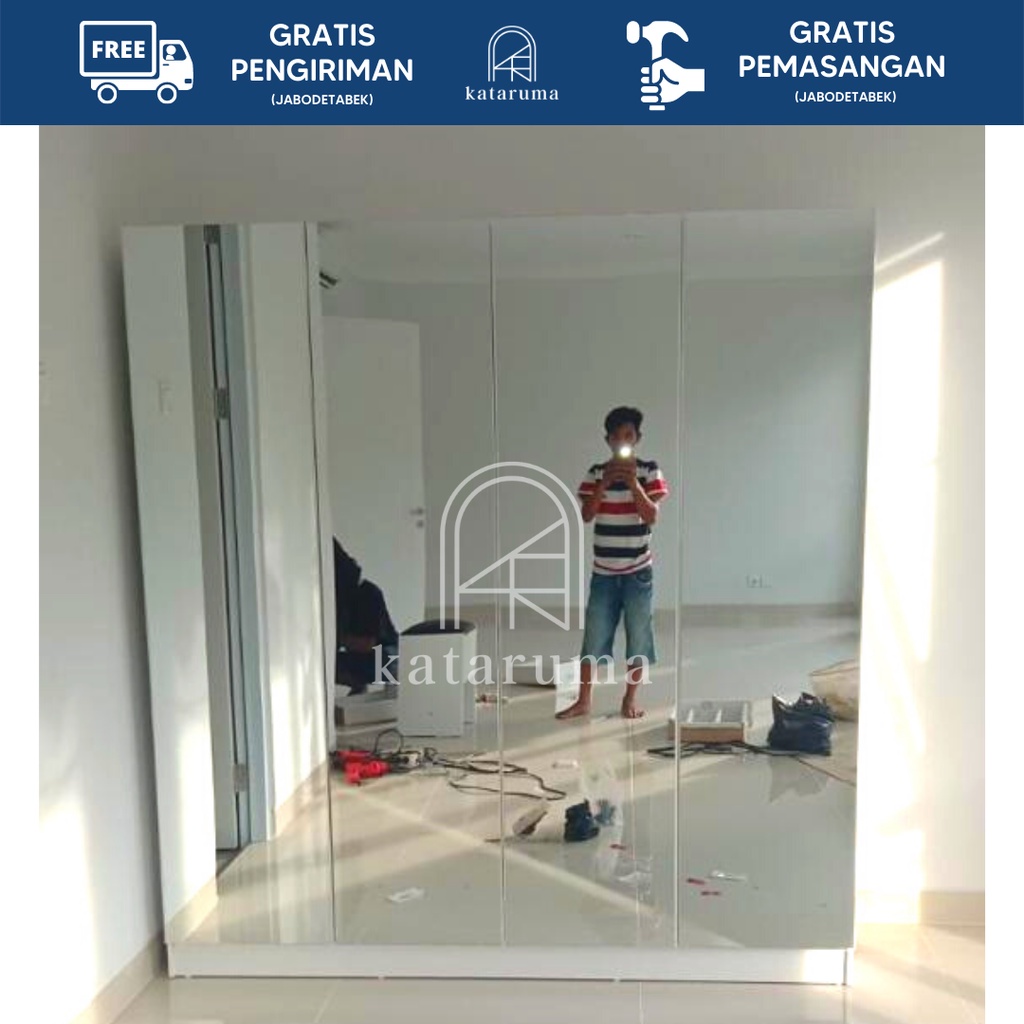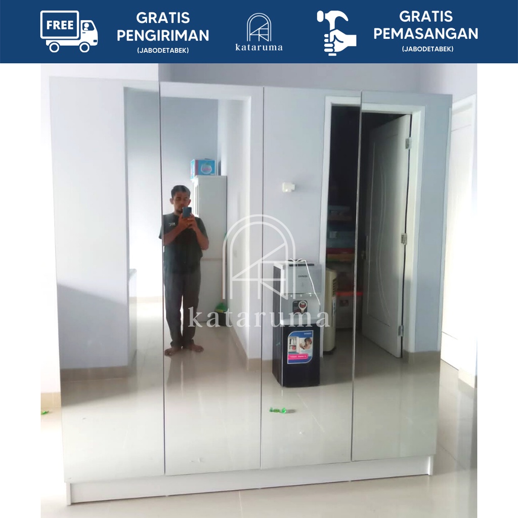 lemari pakaian full kaca Lemari 4 Pintu Full Cermin Swing Door (Buka Tutup) Terjangkau TERLARIS