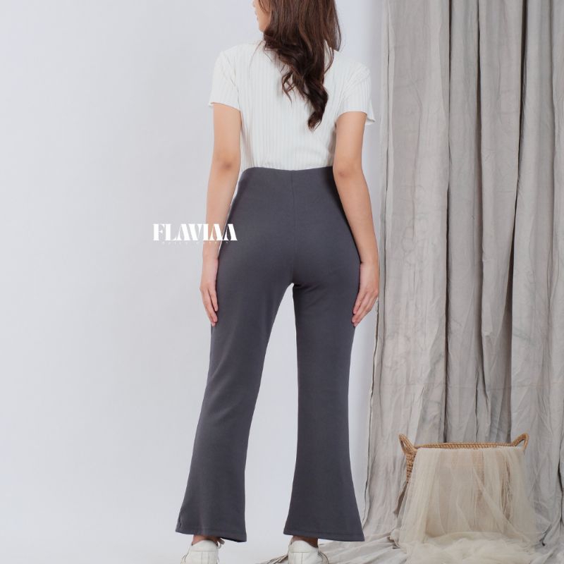 Celana Fit And Flare Pants Cutbray Knit Pinggang Highwaist Bahan Stretch Melar Kulot Cutbray Wanita