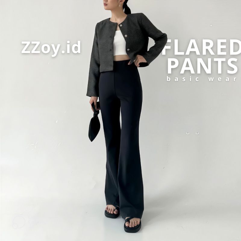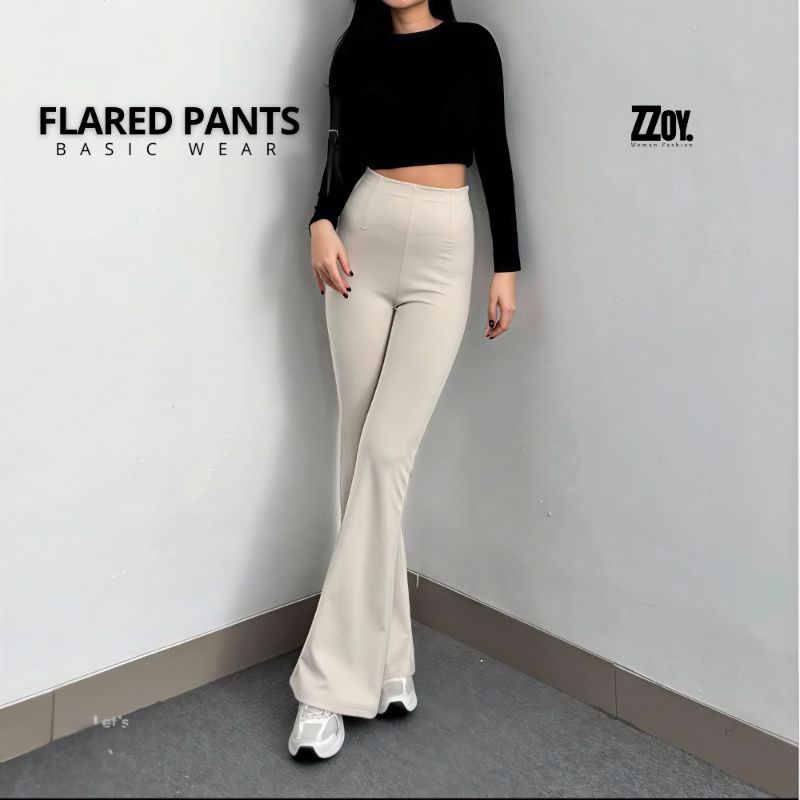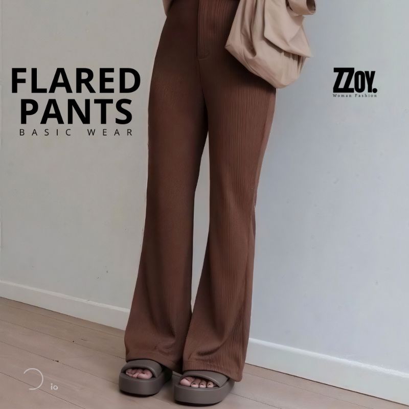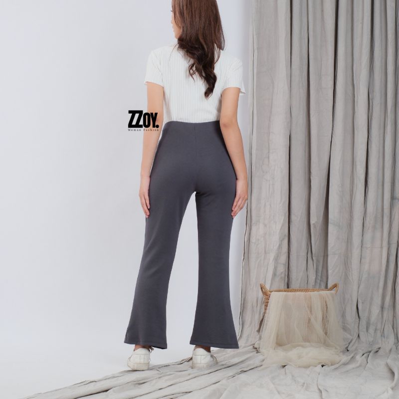 Flare Pants Highwaist Cutbray Celana Kulot Ribb Bahan Knit Streching