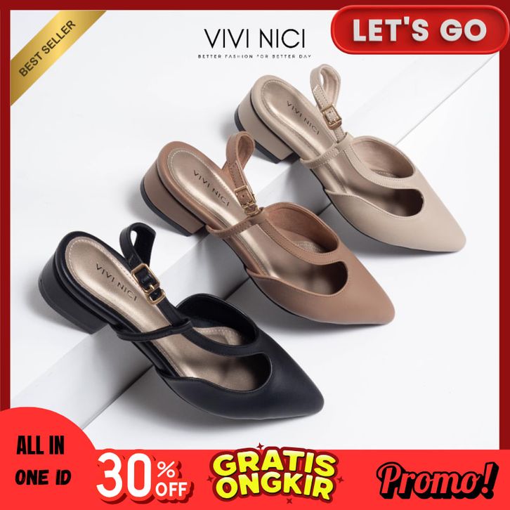 Sepatu Sandal Mules Wanita Hak 3 Cm
