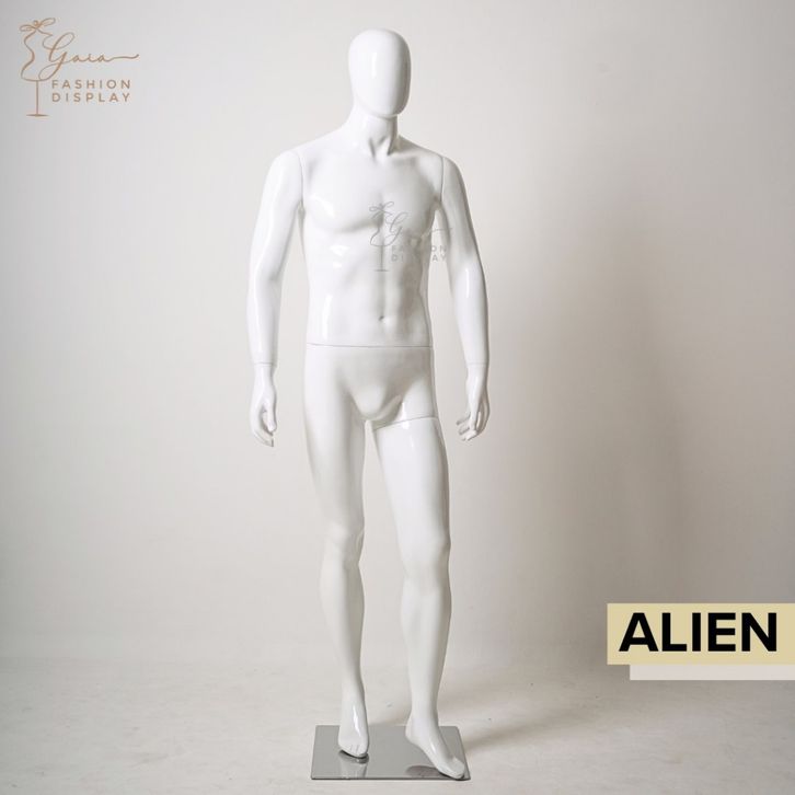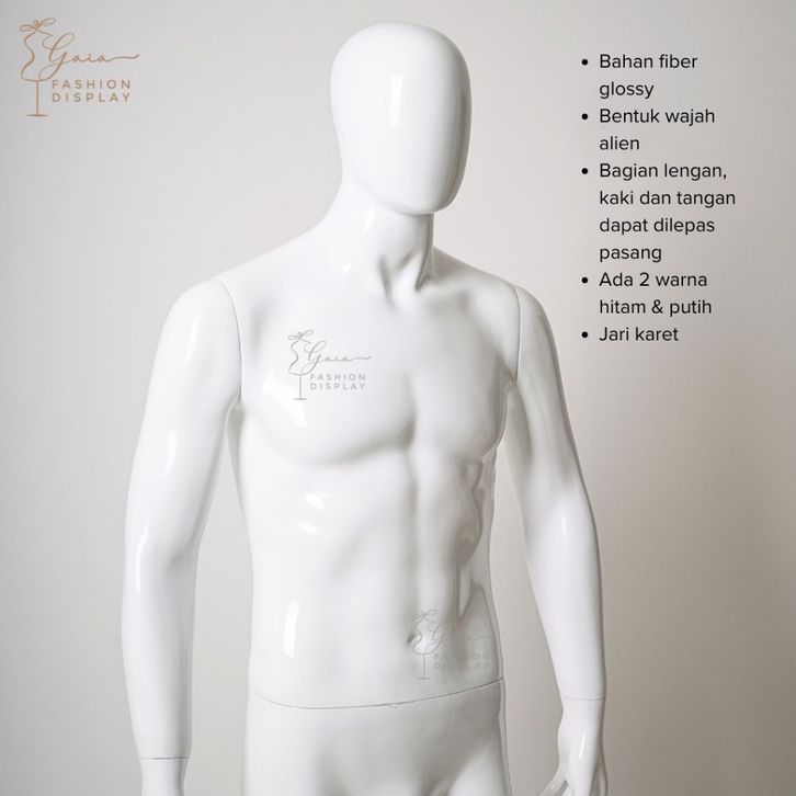 Patung Full Body Cowok Manekin Fiber Alien Putih Glossy Hitam Glossy Premium (SET F)