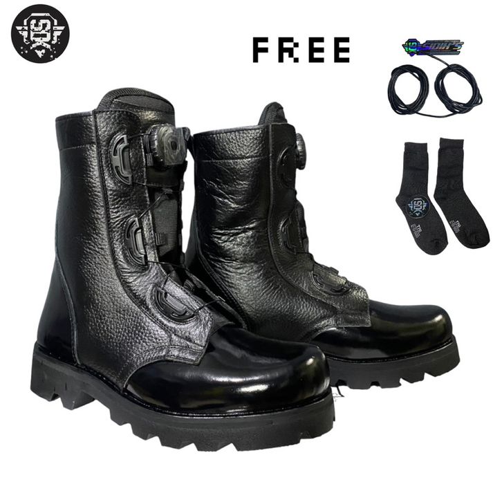 SIDIKS-sepatu pdl trav titans tali putar fitgo sepatu tni polri security kulit hitam shoes pertengahan betis