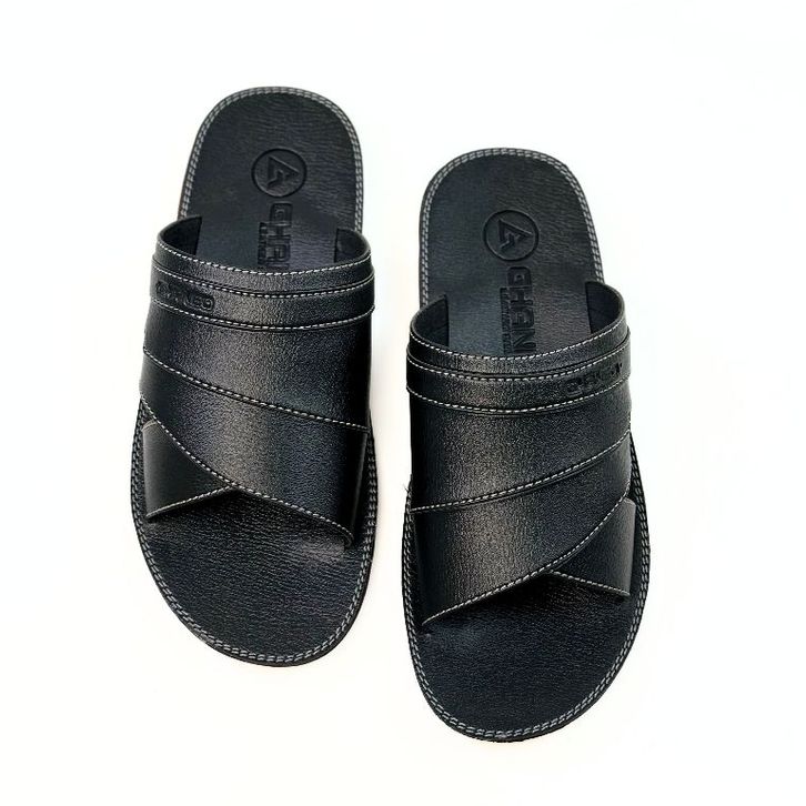 NEW Arrival Ghaneo - Sandal Slop Pria Keren Kulit Casual GN-06 Hitam ifedr