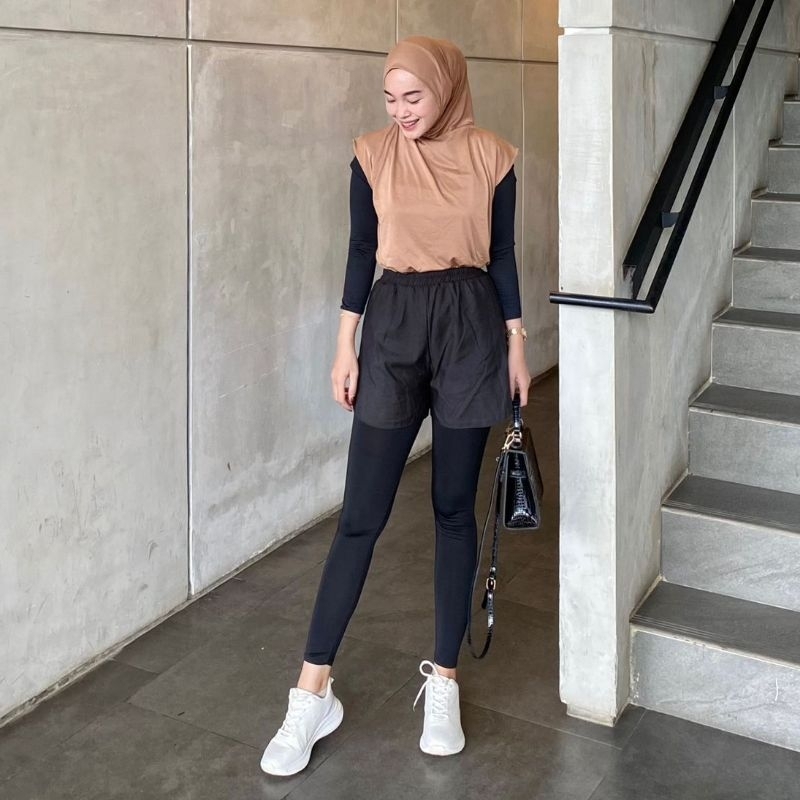 Celana Olahraga 2 in 1 Menyatu Hotpants Legging Short Pants
