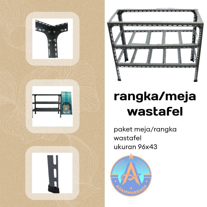 rangka wastafel/meja bak cuci piring wastafel 96x43 ,75x40,50x40 bahan besi siku lubang 1mm