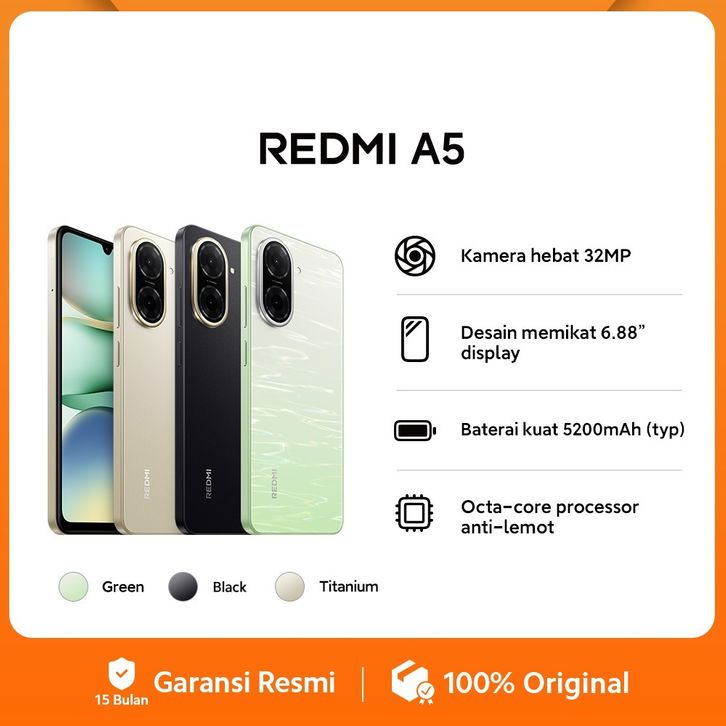 Xiaomi Redmi A5 (4+4GB/128GB) | Kamera Hebat 32MP | Desain Memikat 6.88 Display | Baterai Kuat 5200mAh | Octa-Core