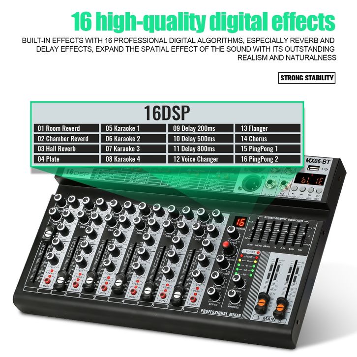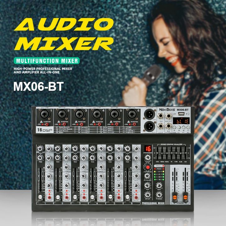 mixer audio ashley NEW BAXS [Asli] MX06BT mixer profesional 6 channel built-in EQ 16DSP Bluetooth/USB/PC/MP3 playback