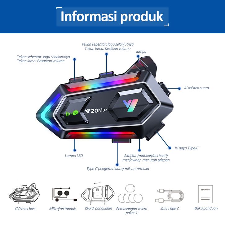 BONKYO Y20MAX WALKIE TALKIE HEADSET BLUETOOTH HELM SEPEDA MOTOR