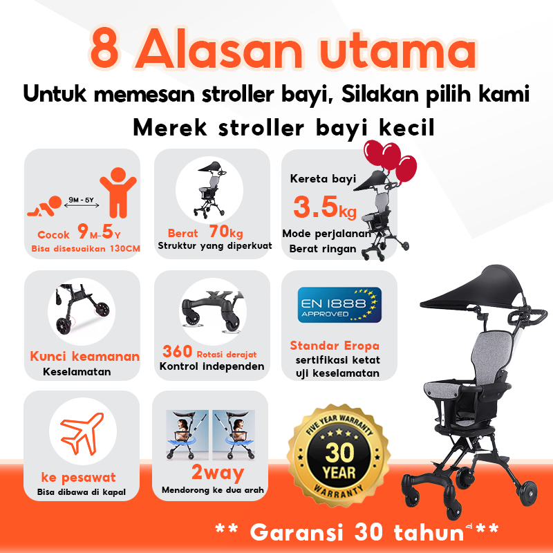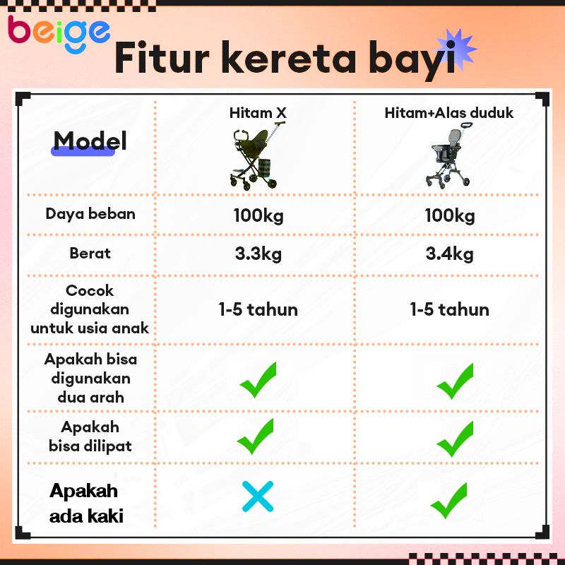 BEIGE Stroller Baby Lipat Stroler Bayi Kereta Bayi Lightweight Kereta Dorong Bayi 2 Arah