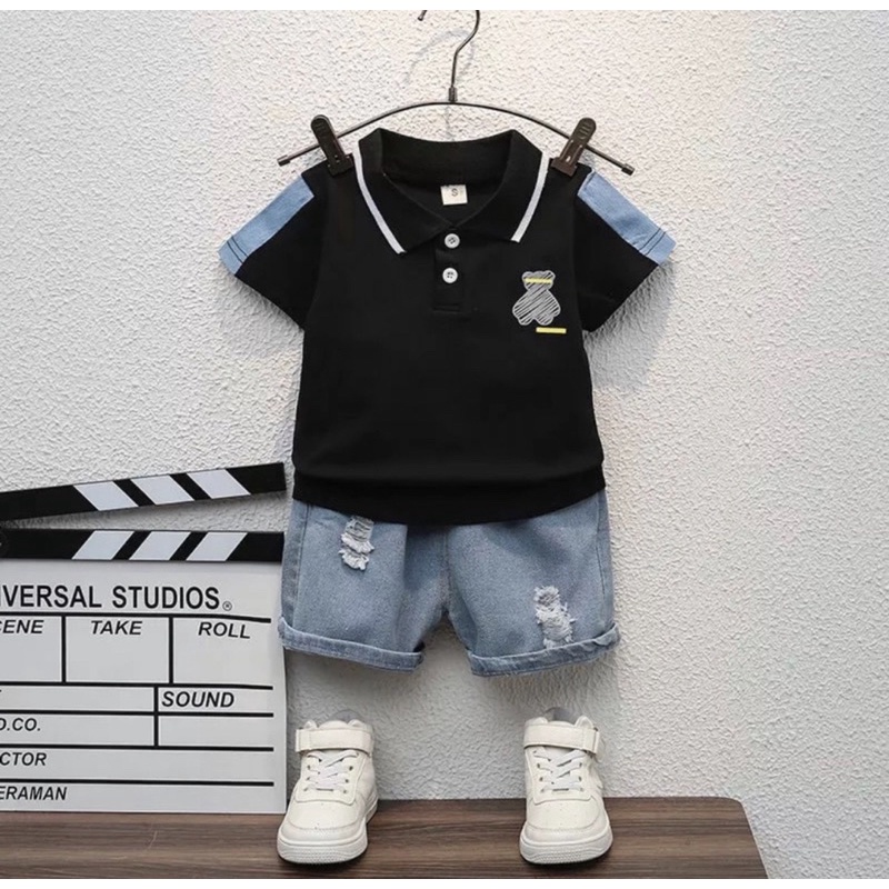 SETELAN BAJU DAN CELANA ANAK PANDA KERAH DENIM 1-5 TAHUN