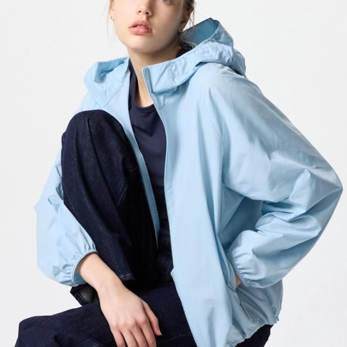 Jaket Parka Saku Proteksi Sinar UV Water Repellent UNIQLO Wanita Original Jastip - BIRU MUDA