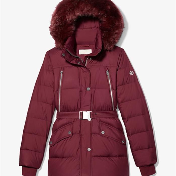 Jaket MK Hoodie Puffer Dop With Belt - MAROON