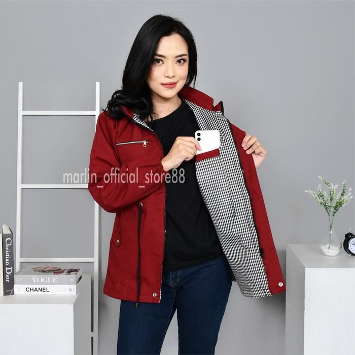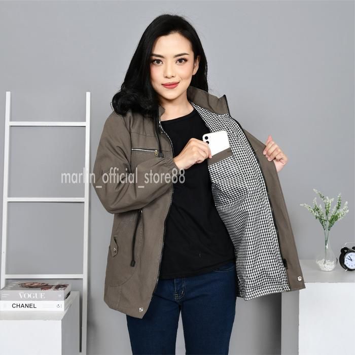 Jaket Parka Wanita Jumbo Bolak Balik Kanvas Premium - ABU-ABU