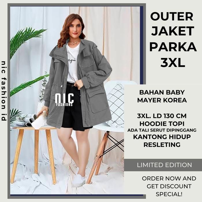Jaket Parka Wanita Big Size 3XL / Sweater Wanita Jumbo Parka - NICSHop - ABU-ABU