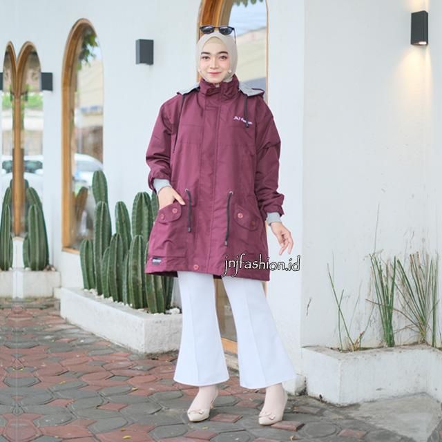 jnjfashion.id JAKET CEWEK PARKA HIJAB PARACHUTE TEBAL PREMIUM QUALITY WATERPROOF - MAROON