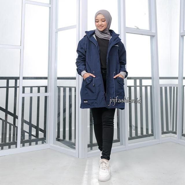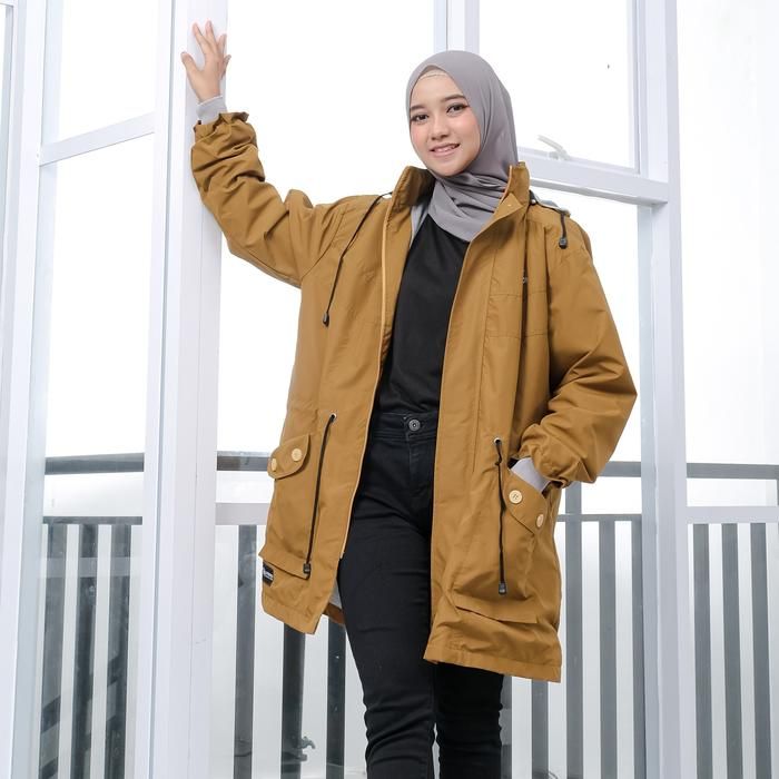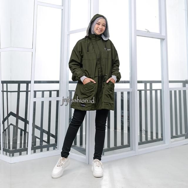jnjfashion.id JAKET CEWEK PARKA HIJAB PARACHUTE TEBAL PREMIUM QUALITY WATERPROOF - ARMY
