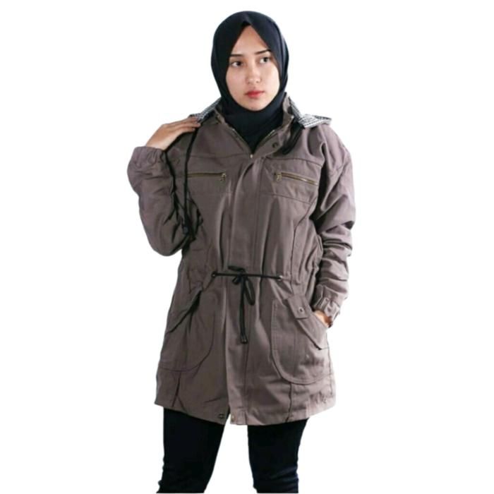 Jaket Parka Wanita Jumbo ld 130 / XXXL Hoodie Bisa Dilepas - Size XXXL - ABU ABU