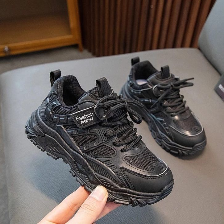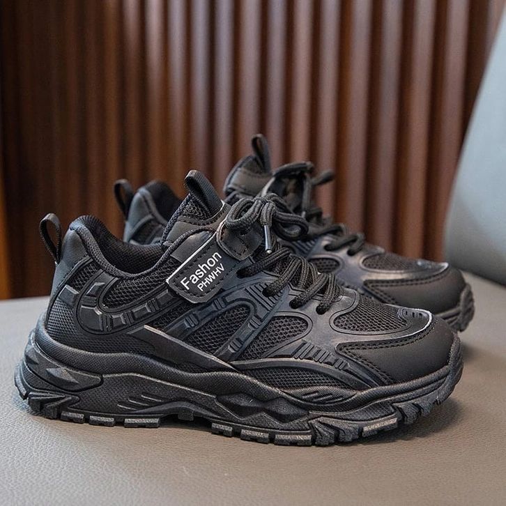 Sepatu Sekolah Hitam Polos Unisex Anak Cewek Cowok Sneakers Full Black Anak Perempuan Laki TK-SD