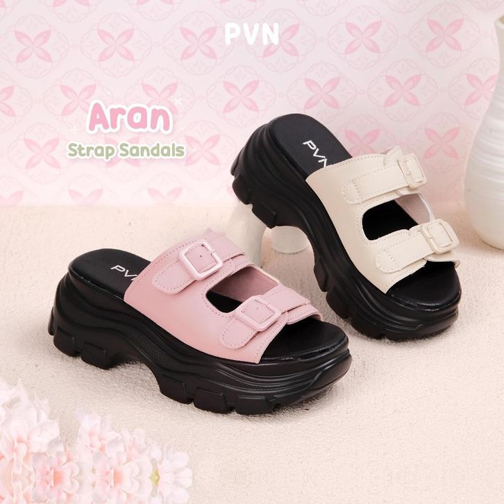 PVN Aran Sandal Tali Wanita Hitam Krem 217