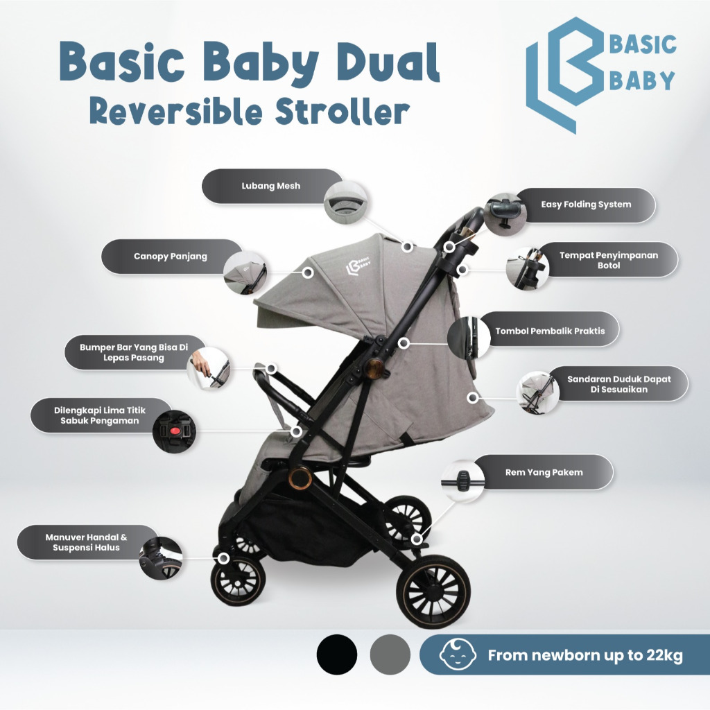 Basic Baby Dual Reversible Stroller - Stroller Compact Travelling / kereta dorong / Stroller 2 arah
