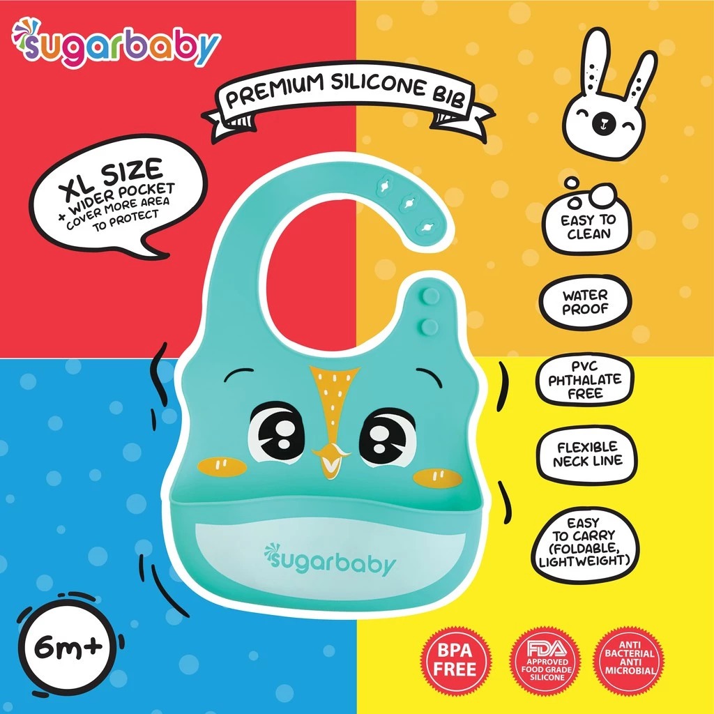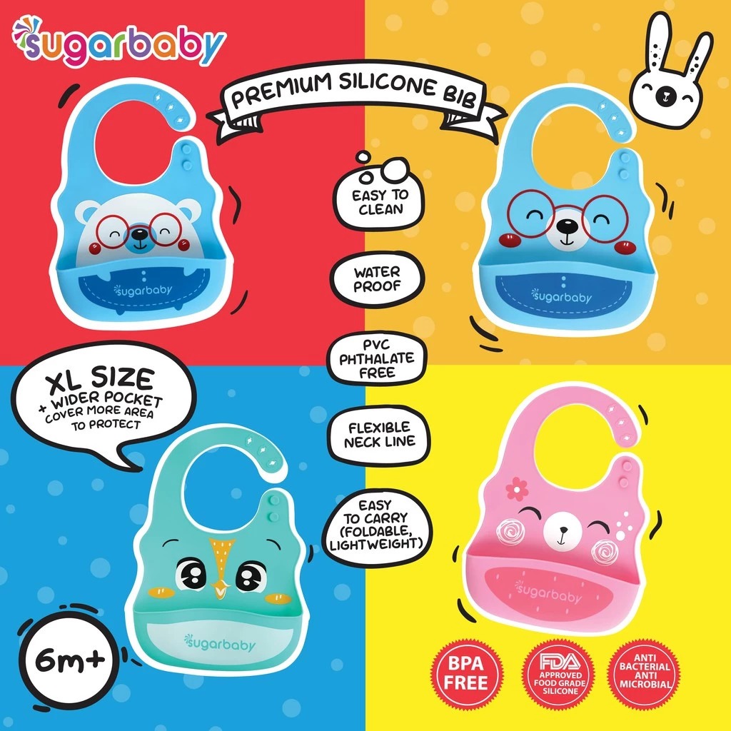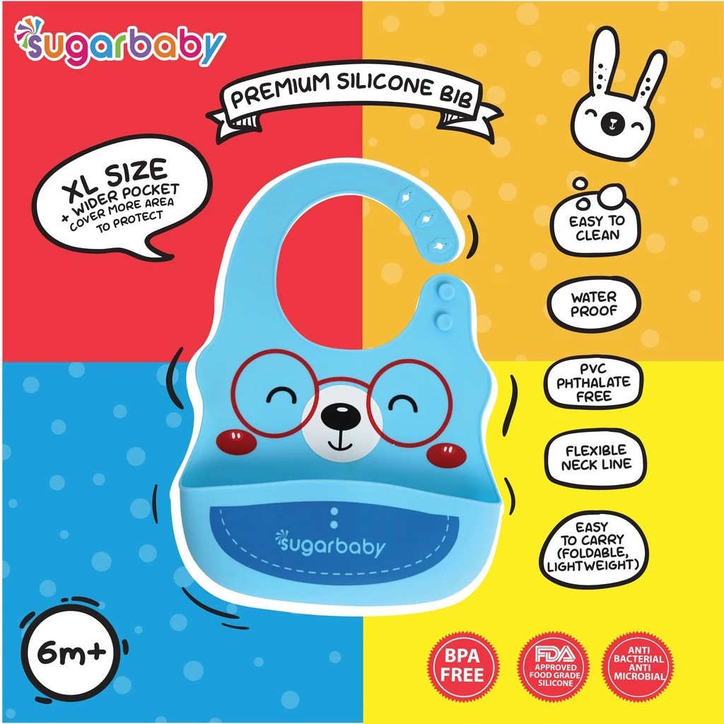 Sugar Baby Premium Silicone BIB XL Size / Celemek Makan Anak