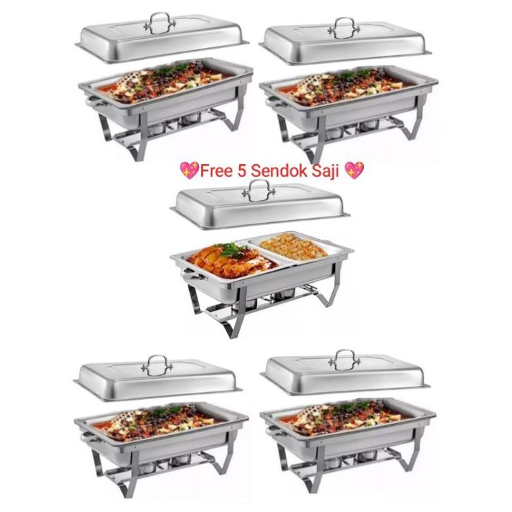 Paket 5 Prasmanan Jumbo 2 : 1 Wadah 4 Set, 2 Wadah 1 Set. Free 5 Sendok Saji