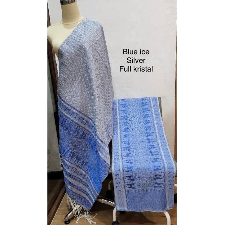 Songket Tumtuman Tarutung Sarung Selendang Mewah Warna Blue Ice Silver Full