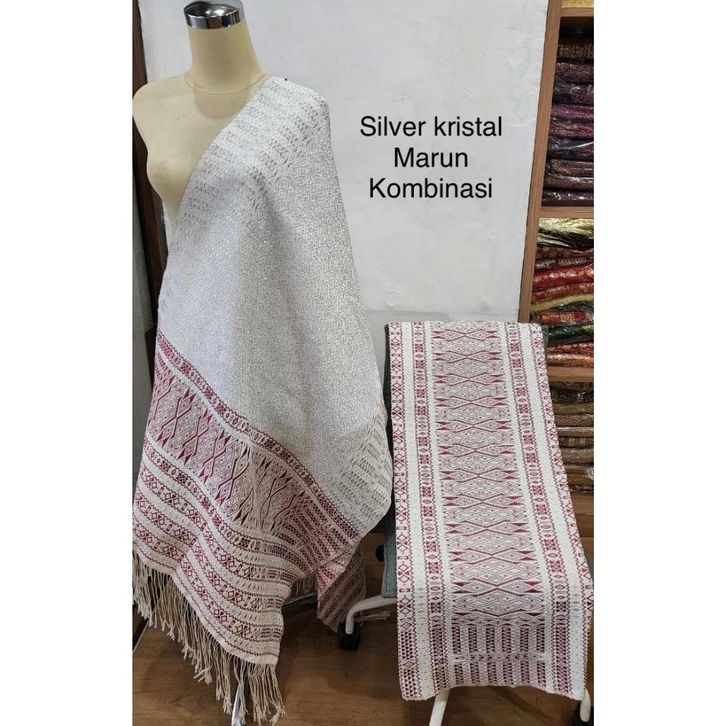 Songket Tumtuman Tarutung Tanpa Sambungan Warna Marun Silver Kombinasi