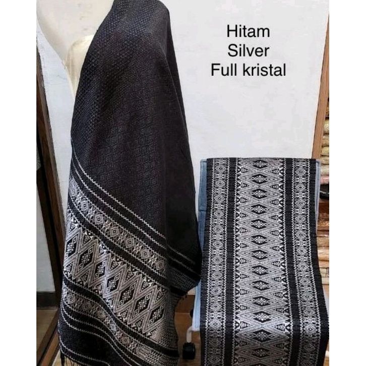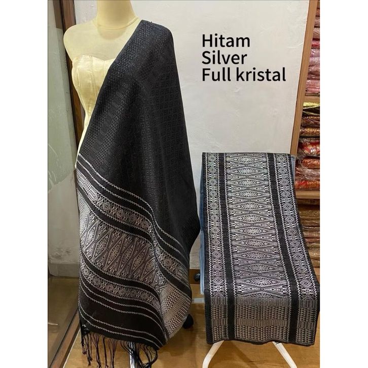 Songket Medan Tumtuman Tanpa Sambungan Hitam Silver Full