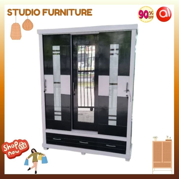 Khusus Bogor Lemari Pakaian Kayu Sliding 3 Pintu