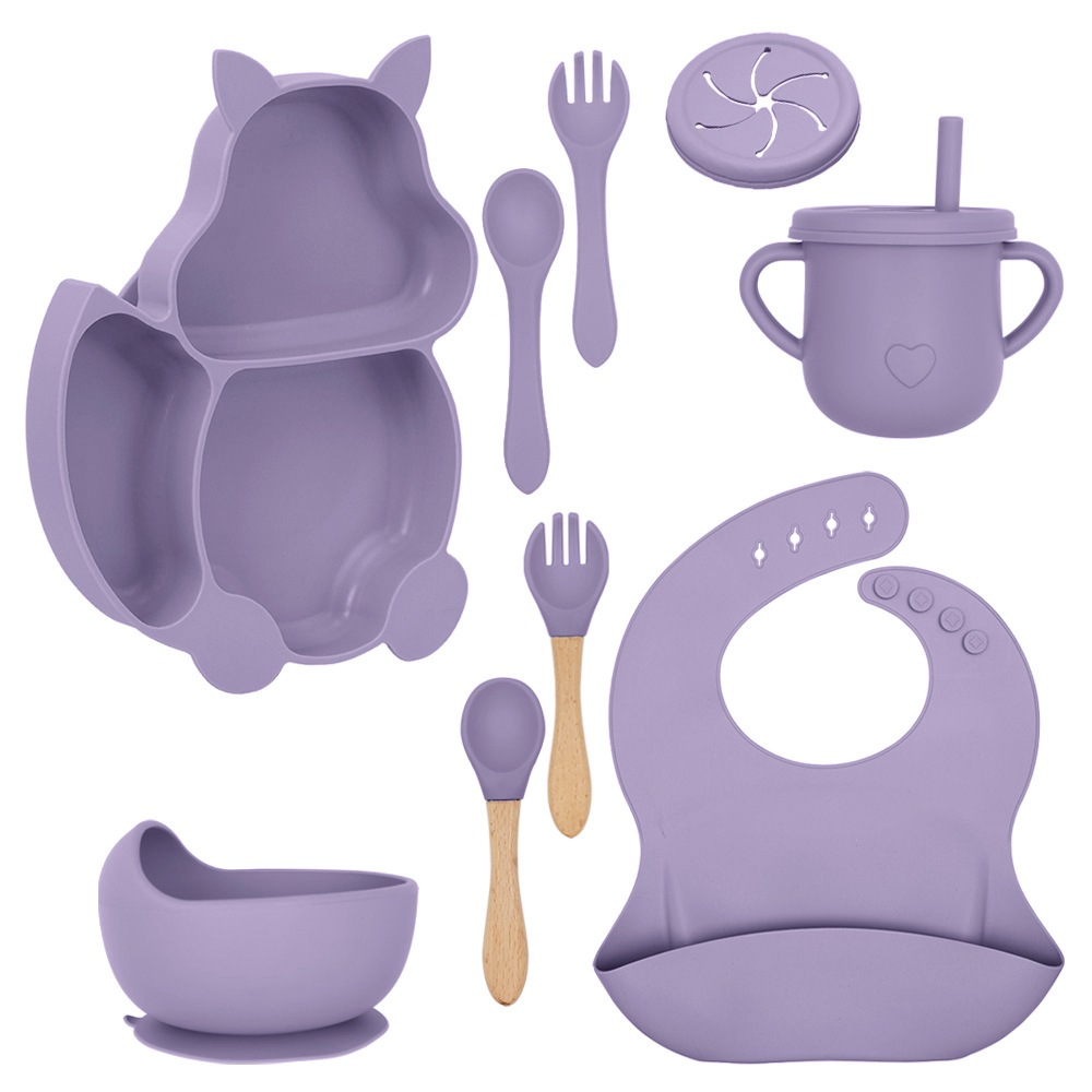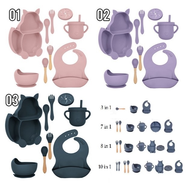 LKM567 Set Alat Tempat Mangkuk Lengkap Makan Silicon Anak Celemek Makan Bayi Bibs Waterproof [1KG 1-4PC] LITTLE KUMA