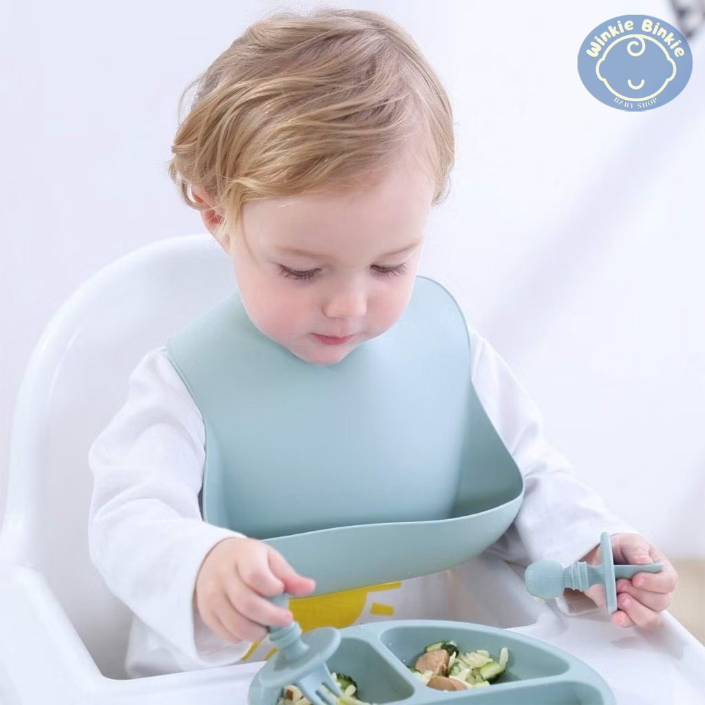 CELEMEK MPASI BAYI MAKAN BIB SILIKON BAYI SLABER SILICONE ANAK