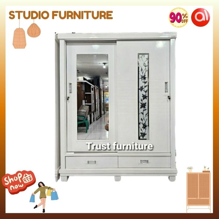 Lemari Pakaian 2 Pintu Sleding/Lemari Pakaian Kayu Pintu Sleding Jumbo Uk 160x57x200Bestseller Variasi Kaca Bevel Type