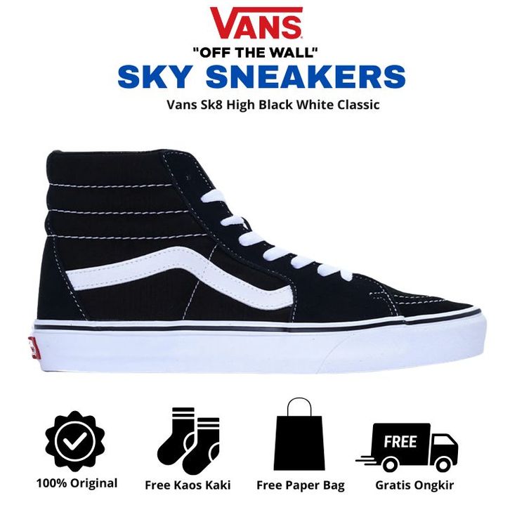 [Mall] SEPATU VANS ORIGINAL PRIA VANS SK8 HIGH BLACK WHITE CLASSIC BNIB SEPATU KASUAL AUTHENTIC