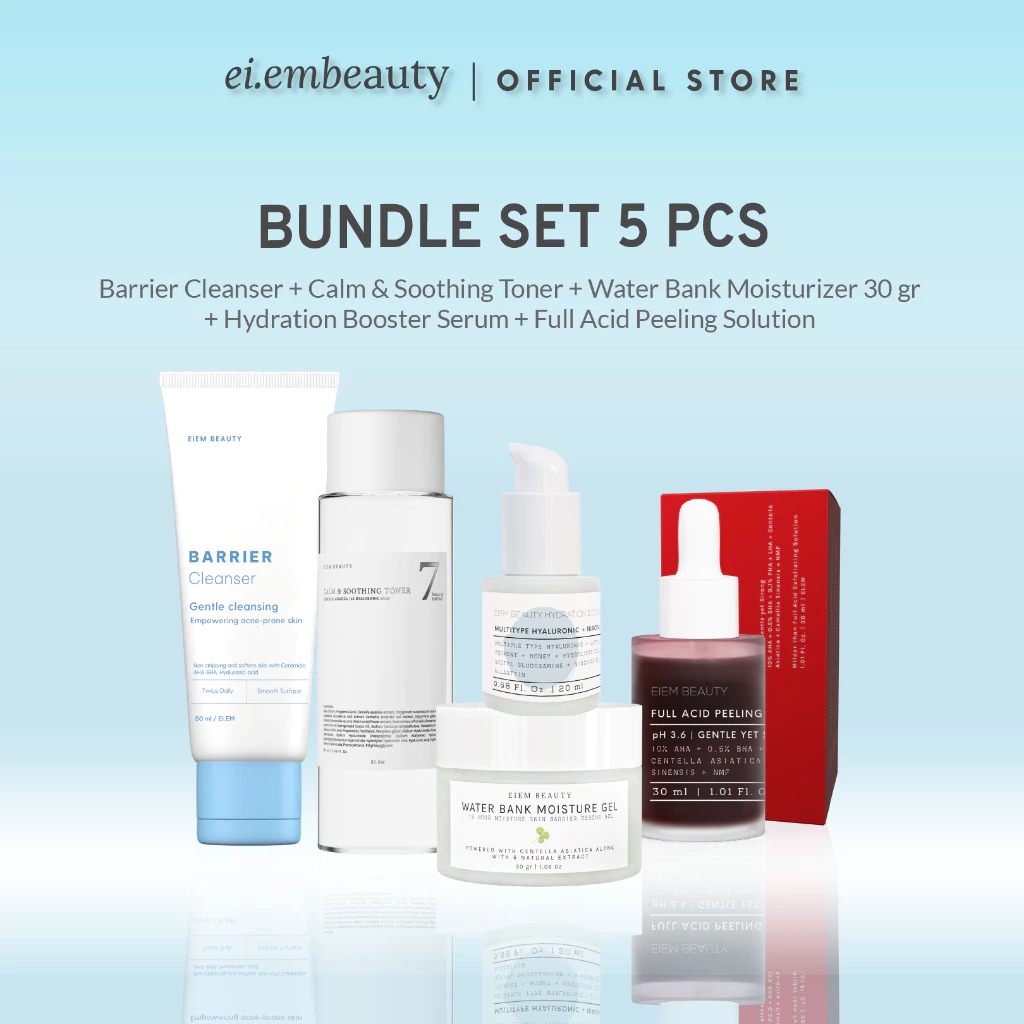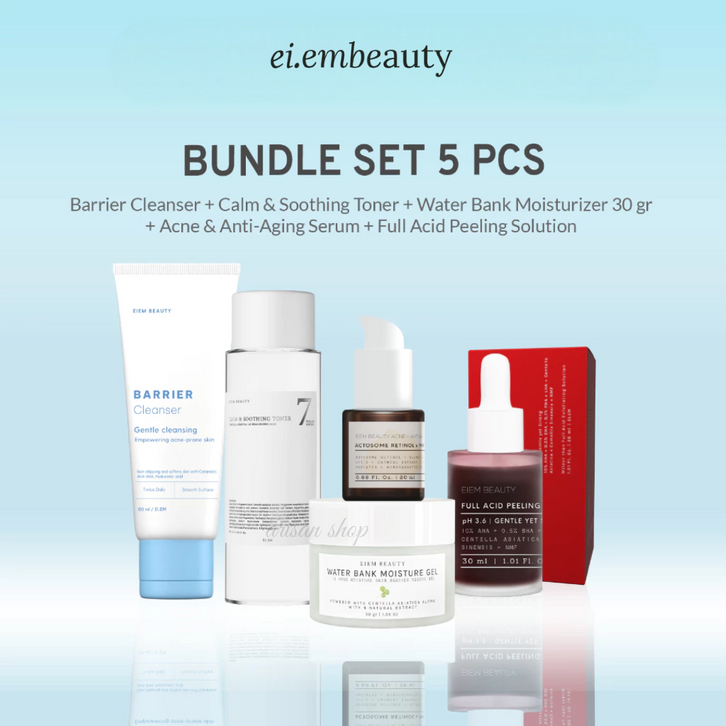 Skincare Eiem Beauty 5pcs Set All Skin [Facial Wash+Toner+Moisturizer+Acne/Hydration/Brightening Serum+Peeling Serum]