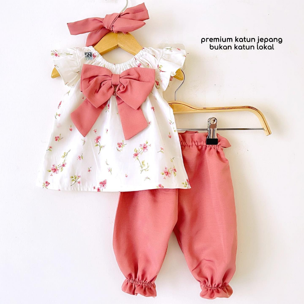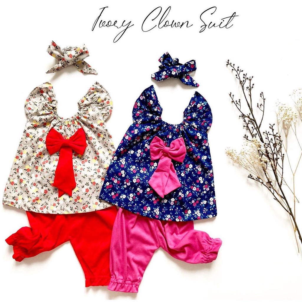 Baju Setelan Bunga Ban Pergi Lucu Fashion Anak Bayi Perempuan cewek terlaris MAY DELIA BUNNY LODY CLOWN SUIT