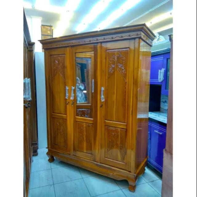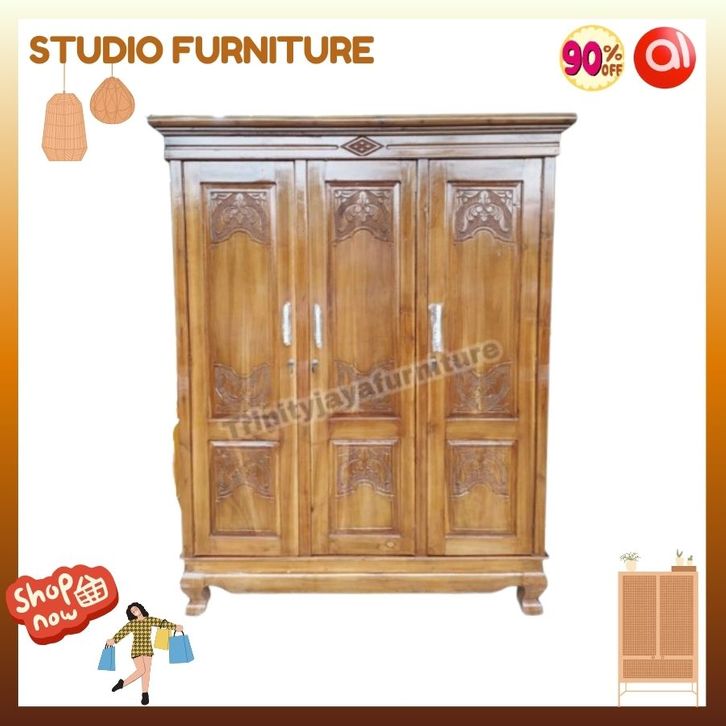 Lemari Pakaian 3 Pintu Kayu Jati 2 Rak / Full Rak/trinityjayafurniture