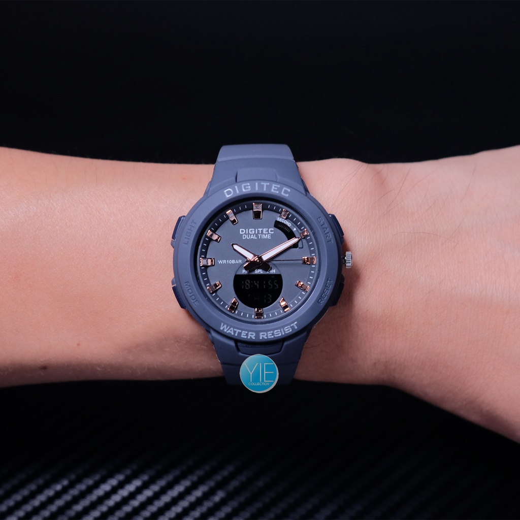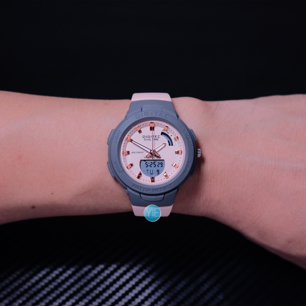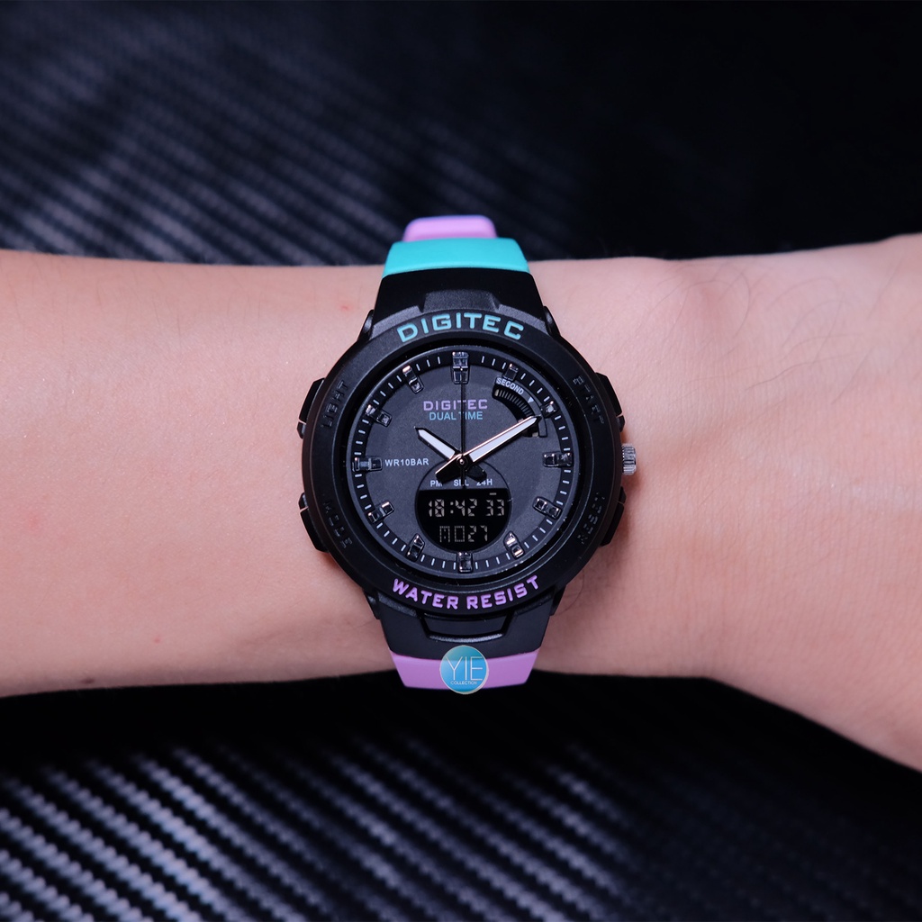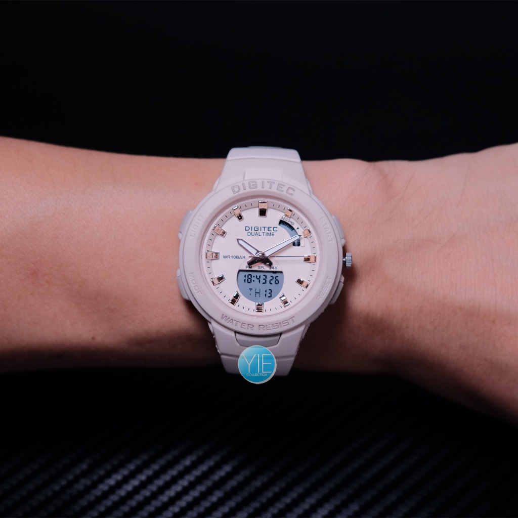 JAM TANGAN WANITA DIGITAL DIGITEC FASHION BDA 4082 T DUAL TIME ORIGINAL ANTI AIR STRAP KARET