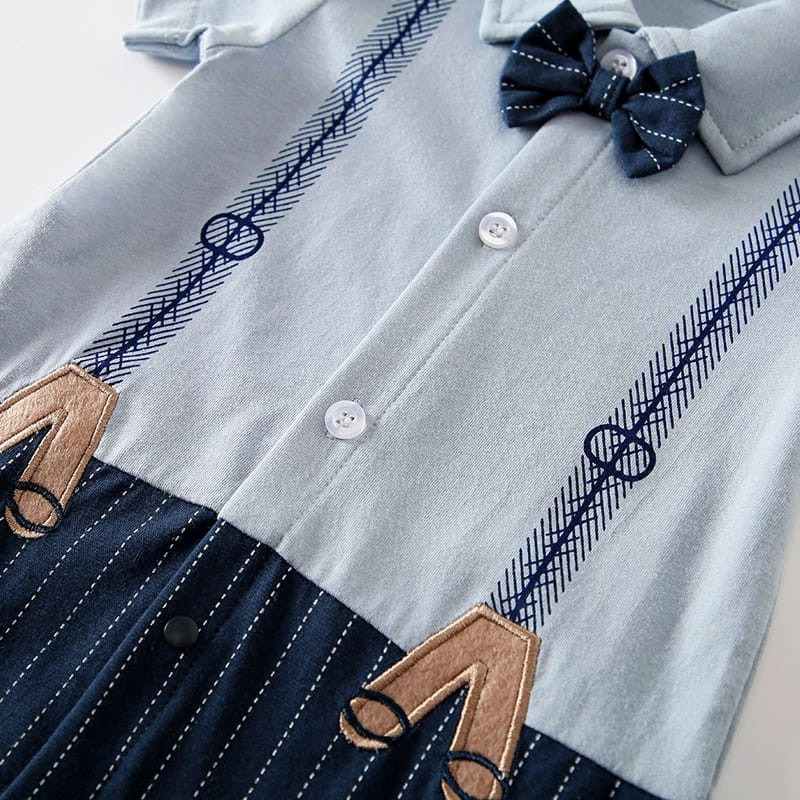 Baju Bayi Laki Laki el Jumpsuit Lengan Pendek 0 6 9 12 18 Bulan Bahan Katun 100% Motif Overall Tuxedo Biru