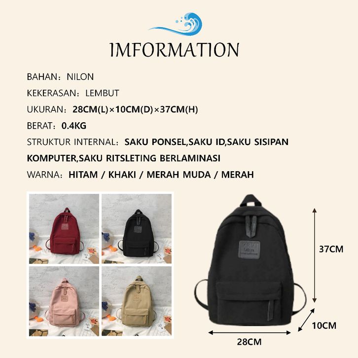Ready Tas Ransel Wanita Korean Backpack Polos Baby Bag Baru Tas Ransel Eiger Anak Sekolah Sma Remaja Perempuan Terbaru