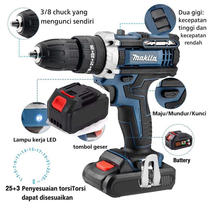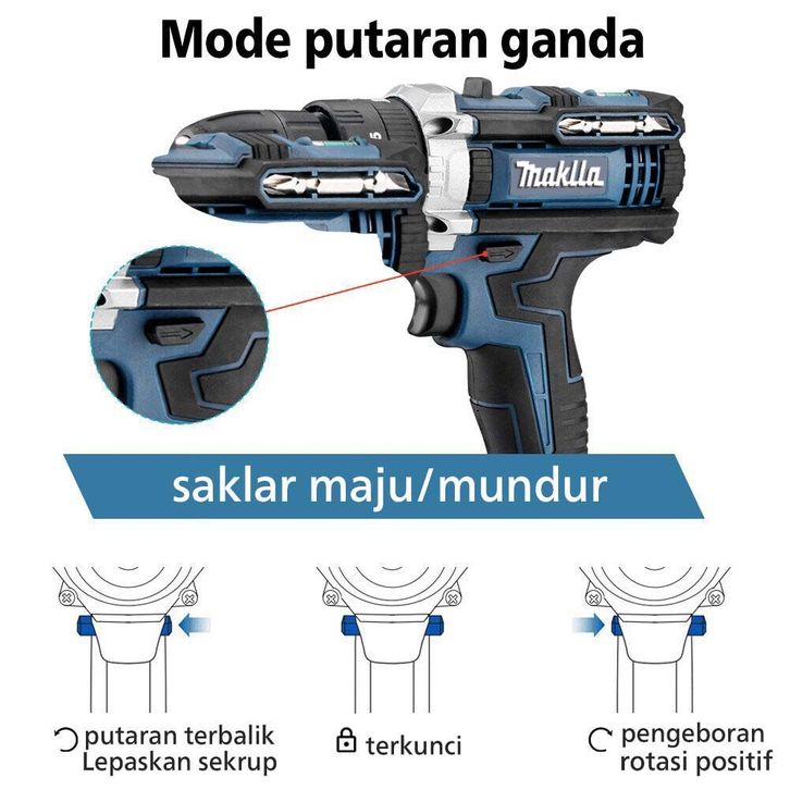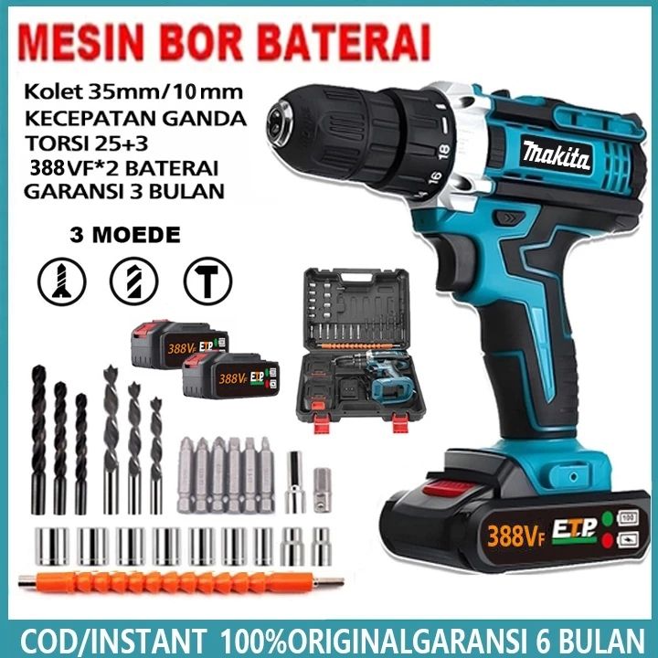 BEST SELLER MAKlTA 766VF Mesin Bor Baterai Bor Impact listrik Bor Cordless Murah Bor cas / 3 Mode-Bor Impact Obeng/Bor